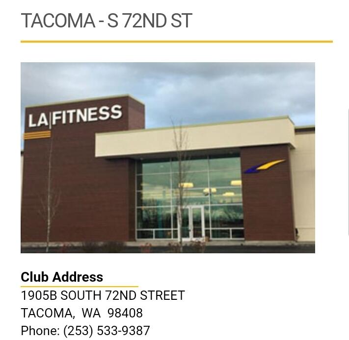 Signature Multi State club membership allows access to all LA Fitness. Search for other Health Clubs on The Real Yellow Pages. TACOMA WA 98444.